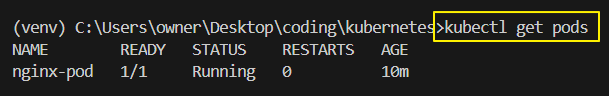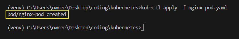 apiVersion: v1 kind: Pod metadata: name: nginx spec: containers: - name: nginx image: nginx:1.14.2 ports: - containerPort: 80 - 명령어에 맞게 Pod를 생성한다.