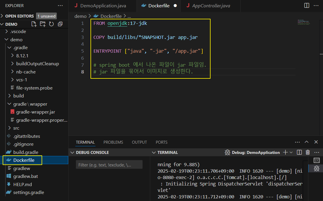 - demo 하위에 Docker file 만들기