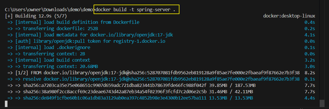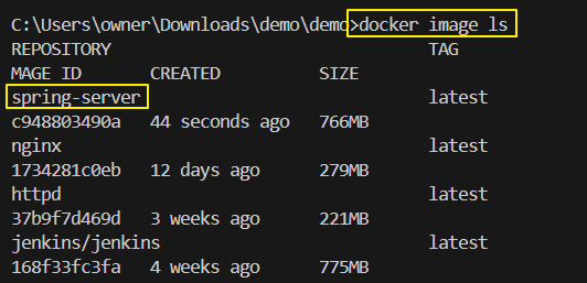 - spring-server 이라는 이름으로 docker image 를 생성