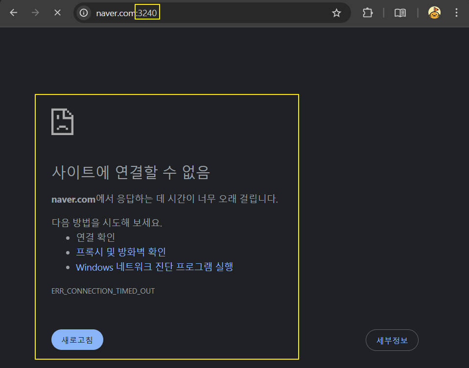 - 만약 다른 port로 통신하고 싶다면, 주소창 뒤에 포트번호를 입력한다.
