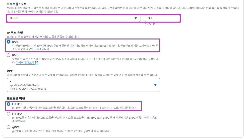 - 리스너 및 라우팅에서 대상 그룹에 위에서 생성한 대상 그룹 추가