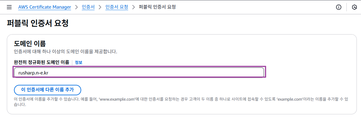 - 도메인 입력 후 다른 사항 변경없이 요청 버튼 선택