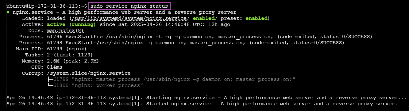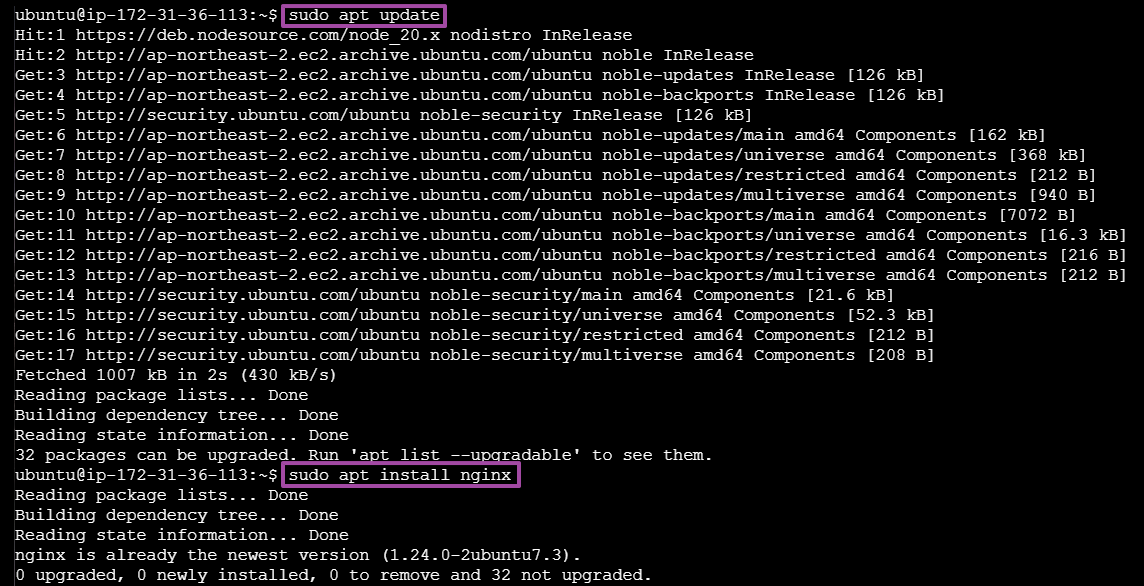 - 80번 포트에서 nginx 페이지 노출 확인 (도메인으로 접속해도 동일)