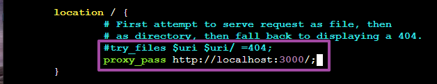 "sudo vi default" 로 default를 vi 에디터로 열기
