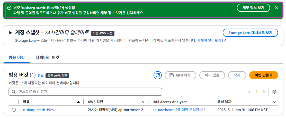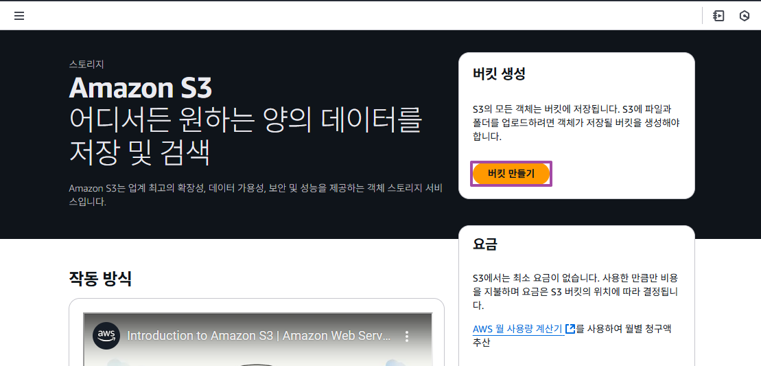 - S3에서 여러개의 저장소를 만들 수 있는데, 그중 하나의 저장소를 `버킷` 이라고 부른다.