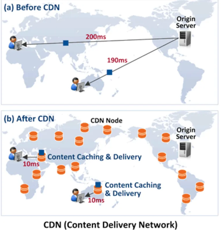 멀리있는 사용자가 가장 가까운 임시 저장소에서 컨텐츠를 가져오게 함으로써 속도를 높일 수 있다.(B) - B 형태의 서비스를 CDN(content delivery network)라고 부른다.