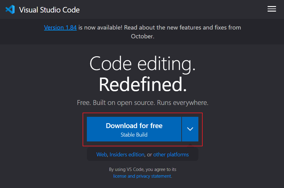 Visual Studio Code is a code editor redefined and optimized for building and debugging modern web and cloud applications. Visual Studio Code is free and available on your favorite platform - Linux, macOS, and Windows.