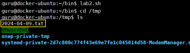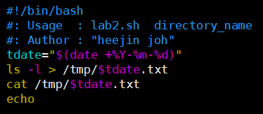 - 현재 디렉토리의 모든 파일 목록을 tmp/"오늘날짜.txt" 파일에 추가하기