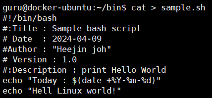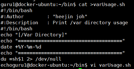 - 쉘 스크립트 파일 생성 후 저장하기 (종료는 ctrl + d )