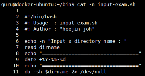 - -n : 메시지 출력 후 newline 문자를 추가하지 않는다.