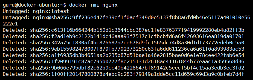 - docker rm image nginx (=docker rmi nginx)