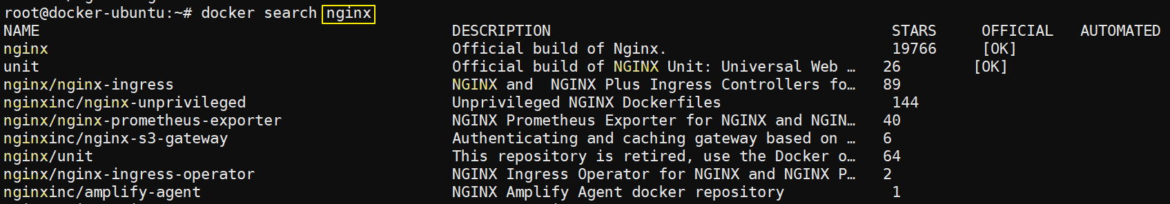 - docker search nginx