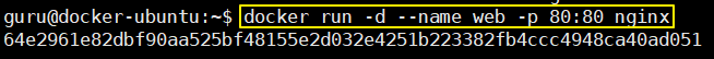 - docker run -d --name web -p 80:80 nginx