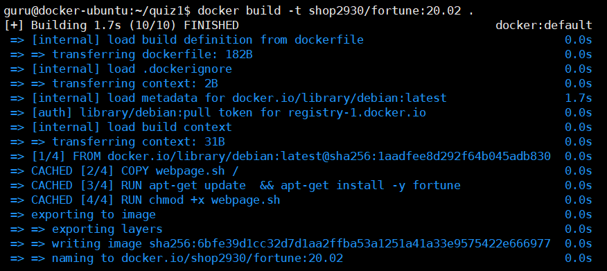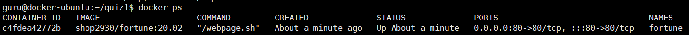 - shop2930/fortune:20.02 를 이름으로 빌드함.