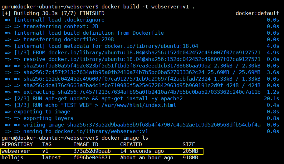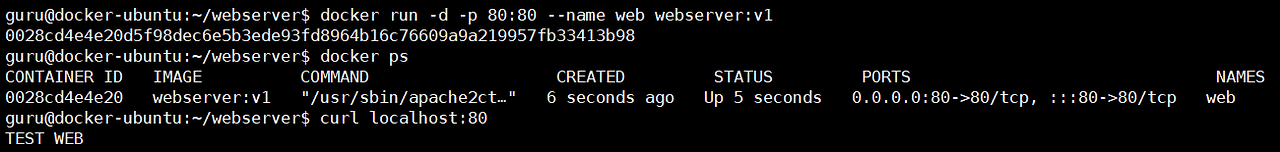 - docker build -t webserver:v1 : 컨테이너 빌드
