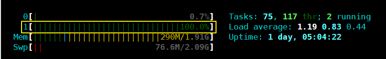 - htop 명령어를 통해 1번 cpu 만 사용중인 것을 확인할 수 있음.
