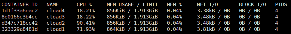 - docker run --cpuset-cpus 0-1 --name c2 -d stress stress --cpu 1
