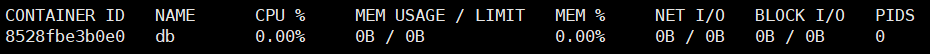 - db 컨테이너 리소스 사용량을 docker stat 명령을 통해 확인해보자.