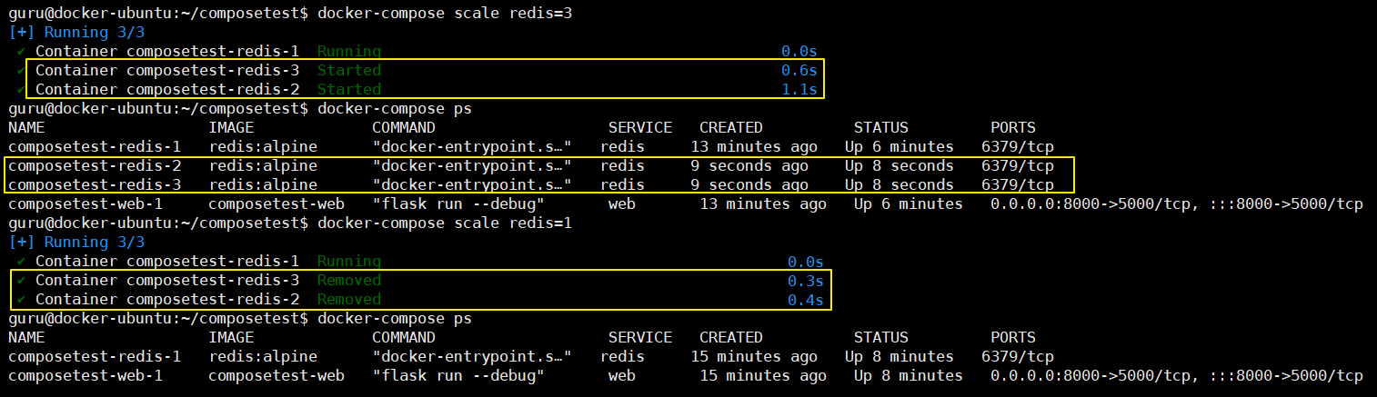 - docker-compose scale [name] = n 을 통해 scale in/out 가능