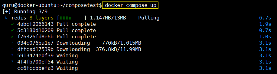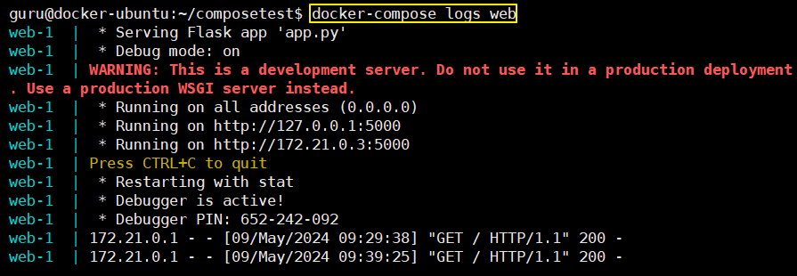 - docker compose up : yaml파일을 이용하여 빌드 및 실행을 요청, web과 redis 컨테이너가 실행됨