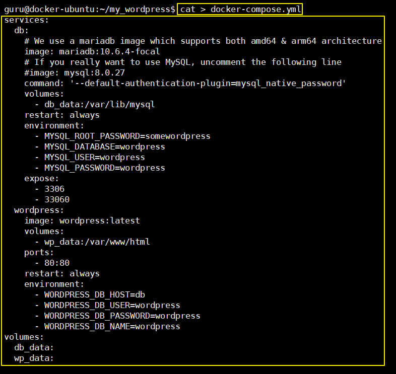 - MYSQL_ROOT_PASSWORD=somewordpress