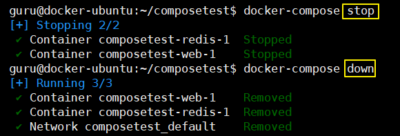 단, down은 해당 compose가 있는 directory에서 실행해야 함.