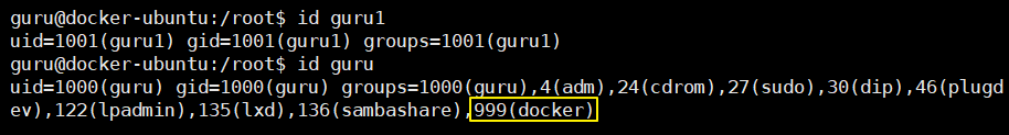 - user 라는 계정이 docker 관리자가 될 수 있도록 구성 ( 나의 경우는, guru )