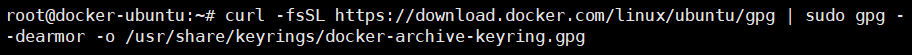 - curl -fsSL https://download.docker.com/linux/ubuntu/gpg | sudo gpg --dearmor -o /usr/share/keyrings/docker-archive-keyring.gpg