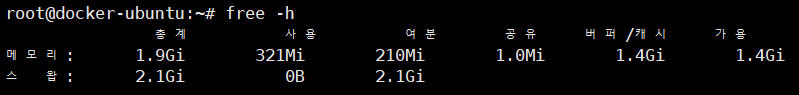 - free -h : 시스템 메모리 사용량 확인 (사람이 이해하기 쉬운 단위로 표기)