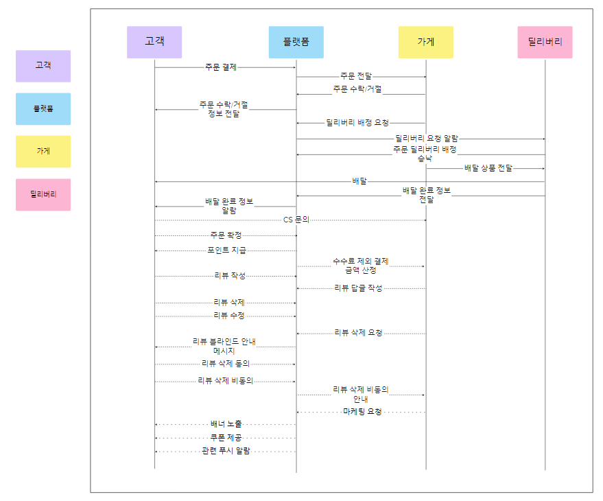 주문 기준 가게등록이 앞단에 있고, 딜리버리 뒤엔 알람, 리뷰 등의 컨텍스트가 포함되어있음을 가정했다.