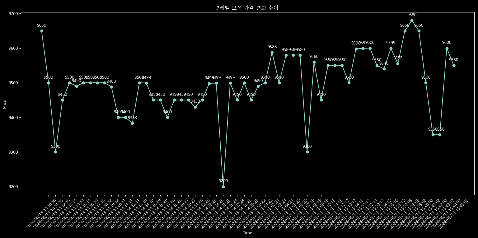 - python 에서 7레벨 보석 최저값을 가져와 list에 입력하기.