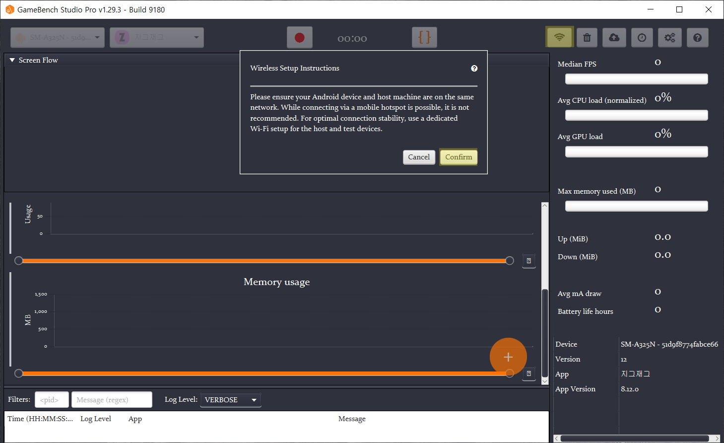 - 게임 벤치 애플리케이션과 테스트 디바이스의 인터넷이 동일한 와이파이에 연결된 상태