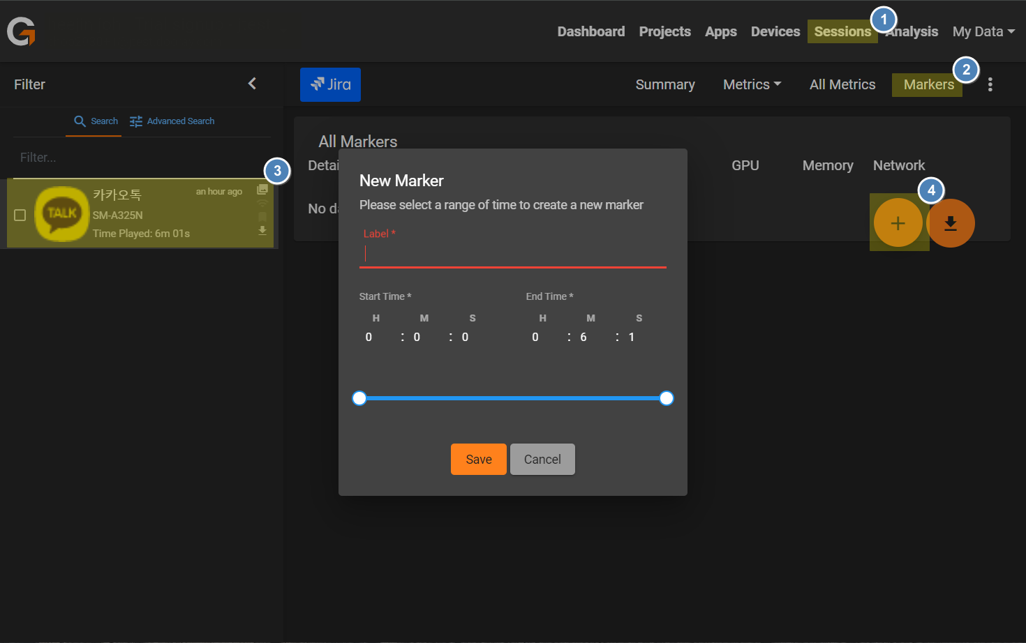 - Sessions - Markers 메뉴로 이동한다.