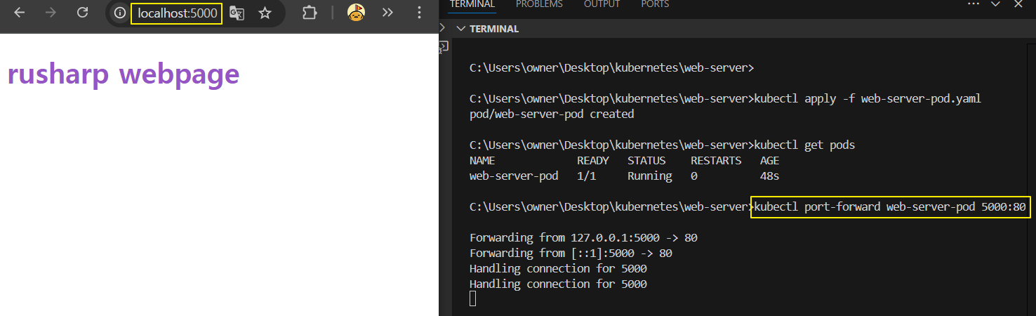 apiVersion: v1 kind: Pod metadata: name: web-server-pod spec: containers: - name : seb-server-container image : my-web-server:latest imagePullPolicy : IfNotPresent ports: - containerPort : 80 - Pod 생성하기