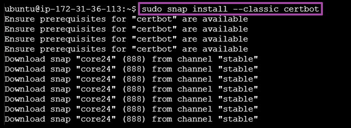 - sudo snap install --classic certbot
