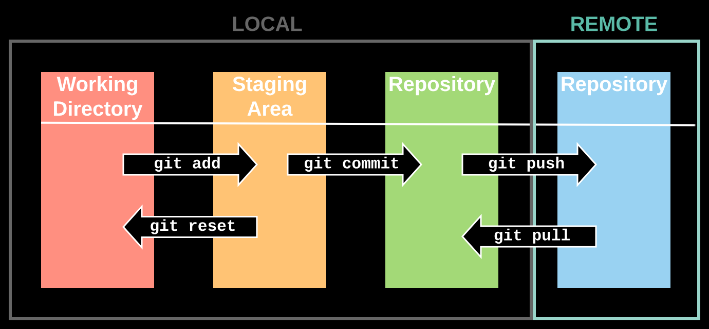 staging area 로 이동된 파일들을 git commit 혹은 git push 명령어를 통해 repository로 옮긴다.