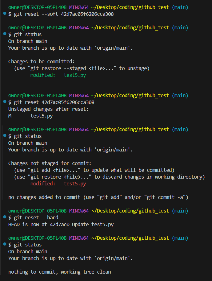 하단 포스팅에서 언급했던 git reset 에는 --soft와 --mixed, --hard 3가지 옵션이 있는데