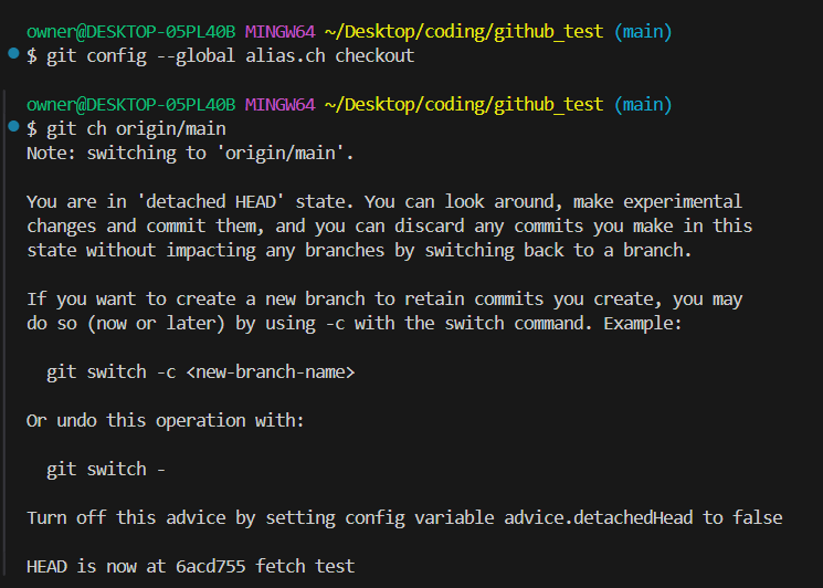 git config --global alias.ch checkout 이렇게 입력해두면 ch 입력할 때마다 checkout 을 할 수 있다.