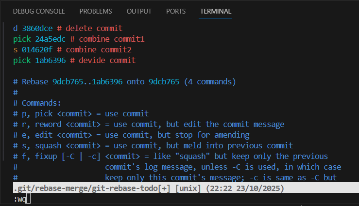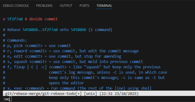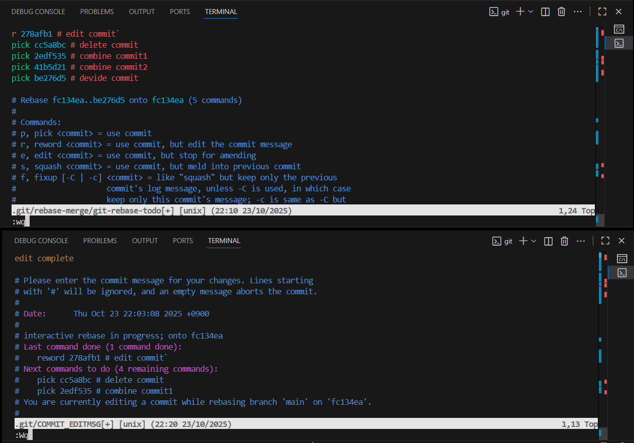 마지막으로 commit 을 나누는 방법은 edit 을 사용하고 저장하면 해당