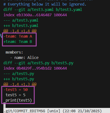 이후 git commit -v 를 진행하면, 아래에 어떤 부분이 변경되었는지 자세하게 확인할 수 있다.