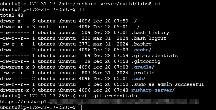 다만 이렇게 되면 EC2에 접근할 수 있는 모든 사용자가 개인 token비밀번호를 볼 수 있는 보안적 한계가 생긴다.