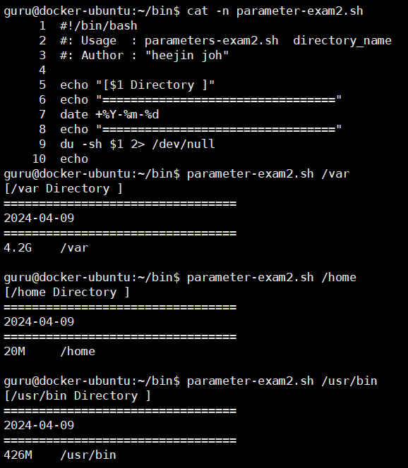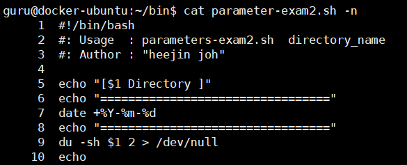 - 입력하는 arguement들은$0, $1, $2와 같이 변수에 저장되어 script에 저달됨